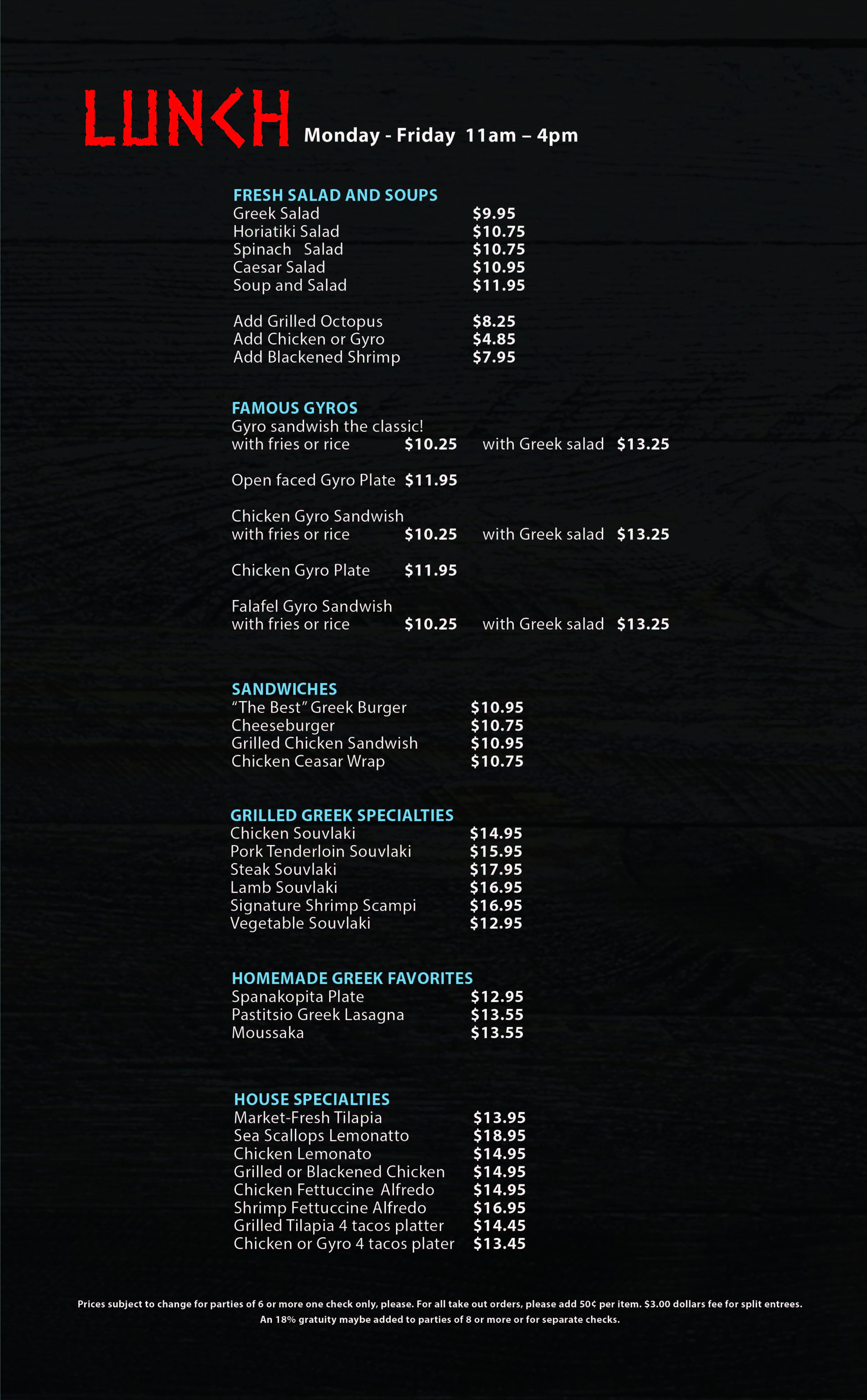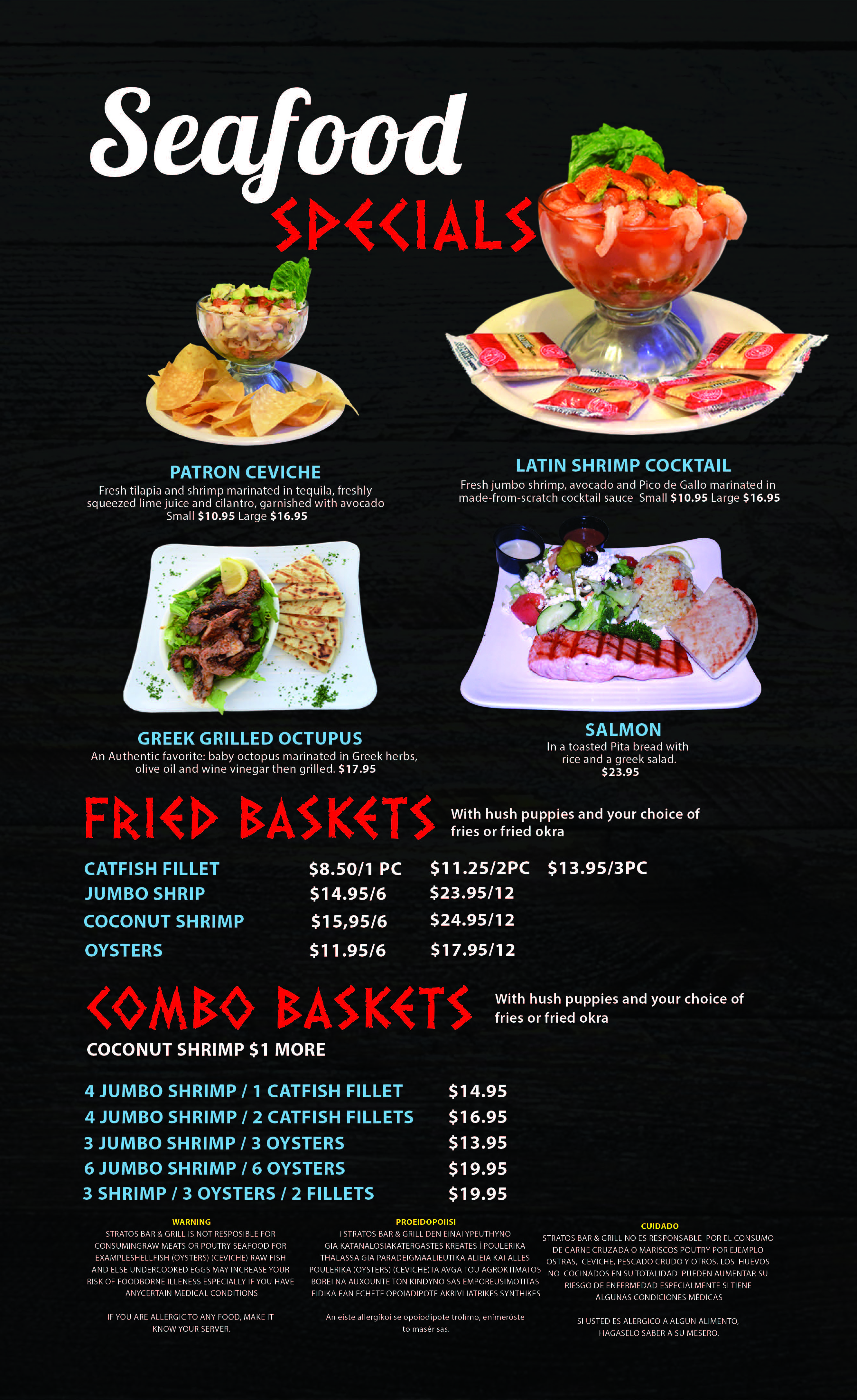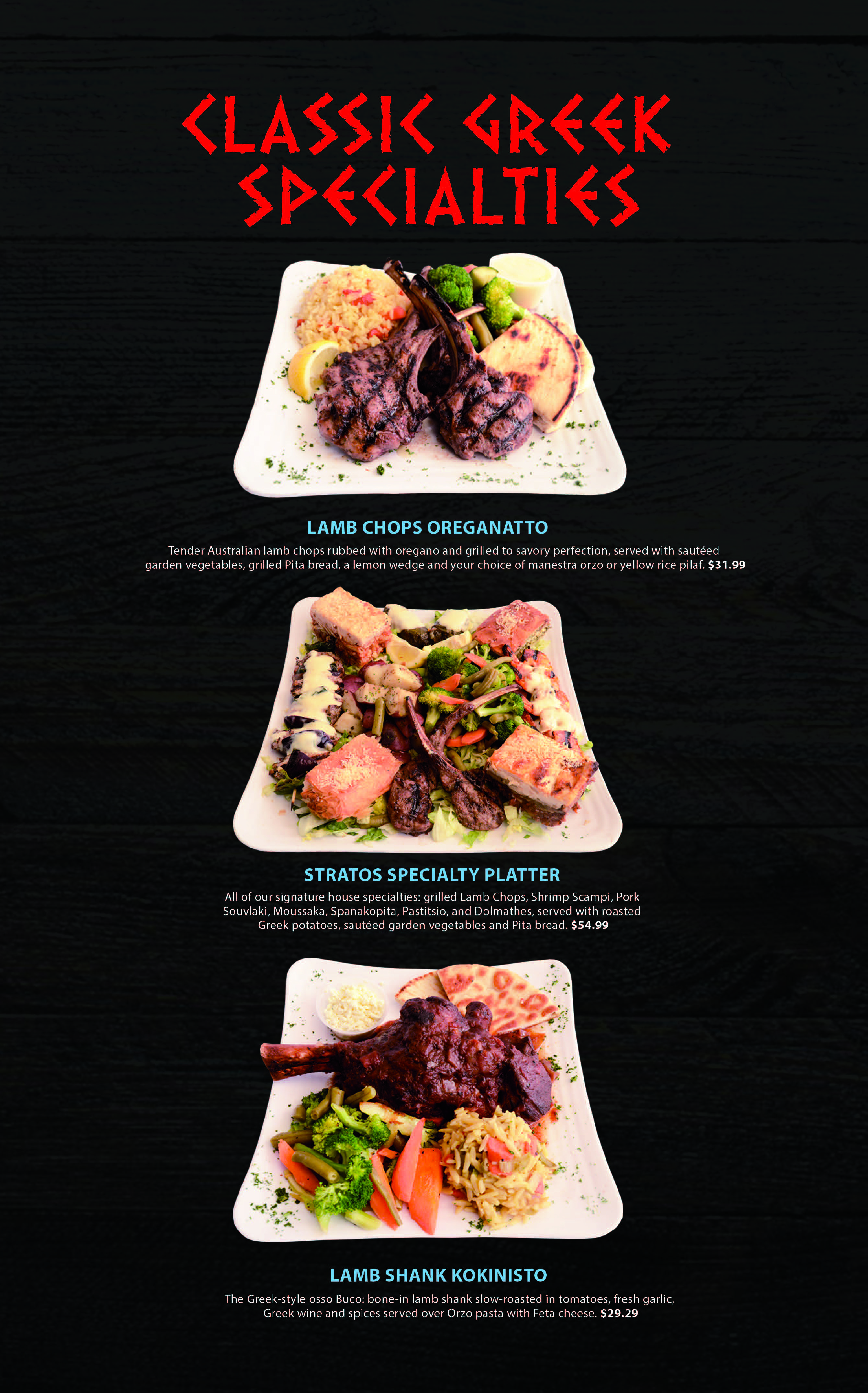 Stratos Bar and Grill, is the best choice to put together a selection that will best fit your occasion. We offer Buffet Style as well as Standard style serving arrangements. We specialize in: weddings, lunches, business lunches, office parties, private parties, public events, holiday parties, family gatherings and custom created events. Stratos guarantees to provide the best in quality service and help you create moments to remember for a life time!